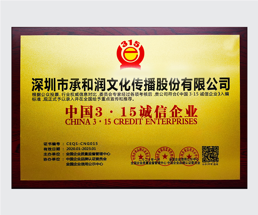 2020年,榮獲全國質量信譽雙保障示范單位、中國3.15誠信企業(yè);